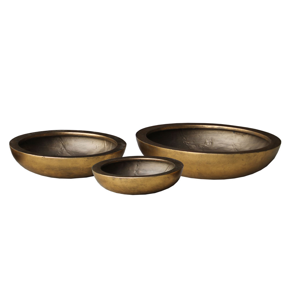Το σετ με μπολ CALIX διαθέτει τρία χρυσά μπολ από τεχνητή πέτρα, που προσφέρουν luxe αισθητική και εντυπωσιακή λάμψη. Ιδανικά για διακόσμηση τραπεζιών, ραφιών ή επαγγελματικών χώρων. Η ανάγλυφη υφή δίνει βάθος και μοντέρνο χαρακτήρα. Τα τρία μεγέθη προσφέρουν πολλές δυνατότητες styling. Ένα premium σετ για statement διακόσμηση.