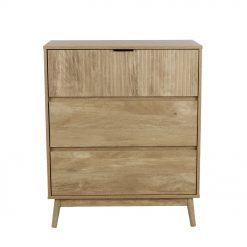 Η συρταριέρα Canal συνδυάζει τη λιτότητα του μοντέρνου σχεδιασμού με τη φυσική αισθητική, δημιουργώντας ένα κομψό και πρακτικό έπιπλο. Κατασκευασμένη από μελαμίνη σε φυσική απόχρωση, αποπνέει ζεστασιά και διαχρονικότητα. Διαθέτει τρία ευρύχωρα συρτάρια, ιδανικά για να οργανώσετε τα αντικείμενά σας με στυλ και λειτουργικότητα. Οι καθαρές γραμμές της και η προσεγμένη κατασκευή της την καθιστούν ιδανική επιλογή για κάθε χώρο που χρειάζεται έναν συνδυασμό πρακτικότητας και κομψότητας. Η Canal είναι το ιδανικό έπιπλο για να αναβαθμίσετε τον χώρο σας.