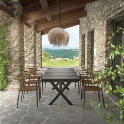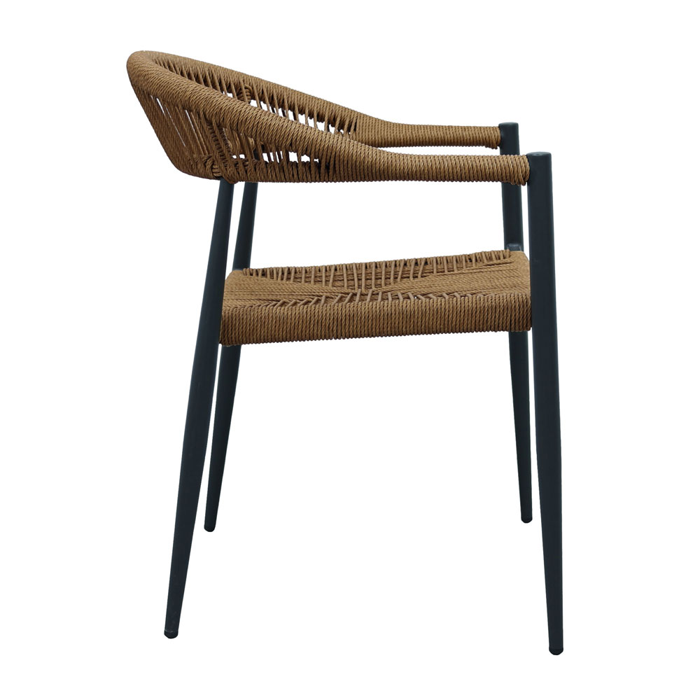 Η καρέκλα Carla συνδυάζει αρμονικά το σύγχρονο design με τη φυσική αισθητική, προσφέροντας κομψότητα και άνεση σε κάθε χώρο. Ο στιβαρός σκελετός της από αλουμίνιο σε μαύρη απόχρωση εξασφαλίζει ανθεκτικότητα και ελαφριά κατασκευή, ενώ η πλάτη και το κάθισμα από συνθετικό rattan σε καρυδί απόχρωση προσδίδουν ζεστασιά και φυσική αίσθηση. Ο εργονομικός της σχεδιασμός και η δυνατότητα στοίβαξης την καθιστούν ιδανική επιλογή τόσο για εσωτερικούς όσο και για εξωτερικούς χώρους, συνδυάζοντας λειτουργικότητα και στυλ.