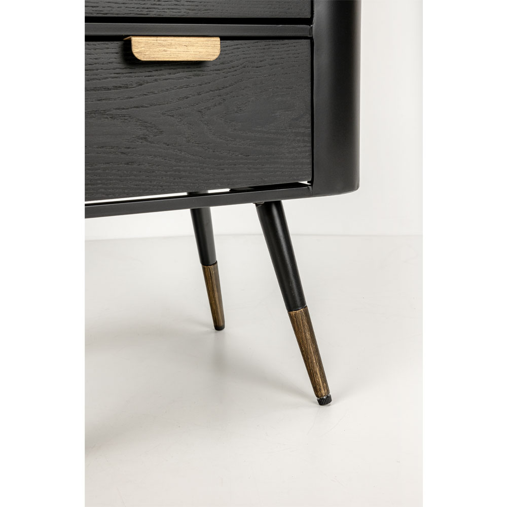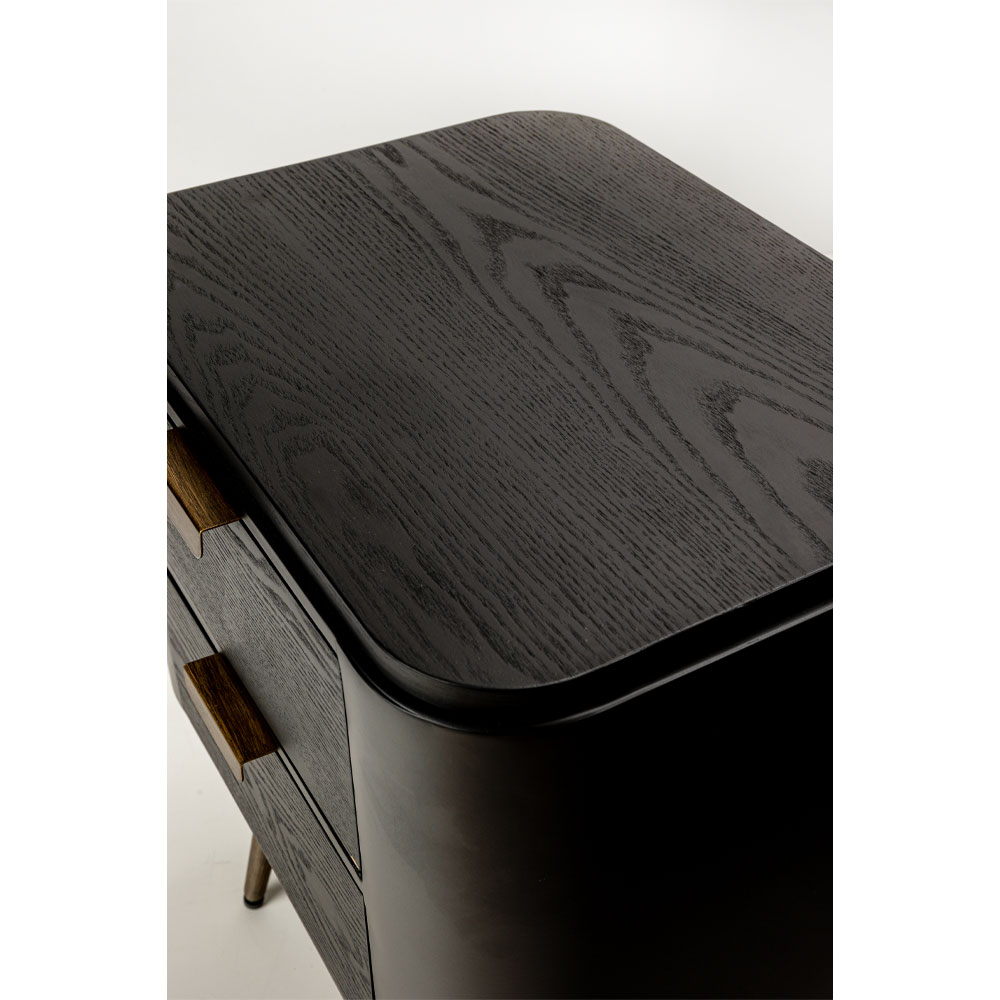 Το κομοδίνο Colombo αποπνέει πολυτέλεια και φινέτσα, ιδανικό για να αναβαθμίσει τη διακόσμηση κάθε χώρου. Ο σκελετός του είναι κατασκευασμένος από ξύλο ελάτου με επένδυση καπλαμά μελιάς σε κομψή μαύρη απόχρωση. Διαθέτει δύο ευρύχωρα συρτάρια, που προσφέρουν πρακτικότητα, ενώ τα μαύρα μεταλλικά πόδια με χρυσές λεπτομέρειες προσδίδουν μία διακριτική λάμψη και σταθερότητα. Ένα μοναδικό κομμάτι για όσους αναζητούν μοντέρνο αλλά και εκλεπτυσμένο στιλ.