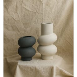 Το βάζο DANEET παρουσιάζει μια ιδιαίτερη, τριπλή καμπύλη μορφή που θυμίζει soft-sculpture και δίνει μοντέρνα ταυτότητα στη διακόσμηση. Η γκρι απόχρωσή του προσφέρει ισορροπία και neutral χαρακτήρα, ιδανικό για contemporary ή industrial περιβάλλοντα. Το αλουμίνιο εξασφαλίζει υψηλή ανθεκτικότητα και σταθερότητα. Ένα compact αλλά εντυπωσιακό κομμάτι που ταιριάζει σε κονσόλες, coffee tables ή συνθέσεις με dried flowers.