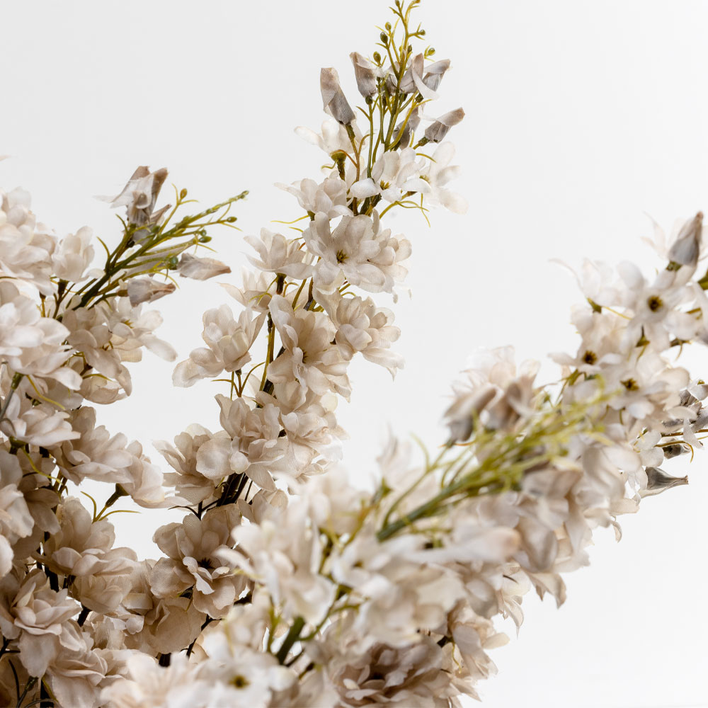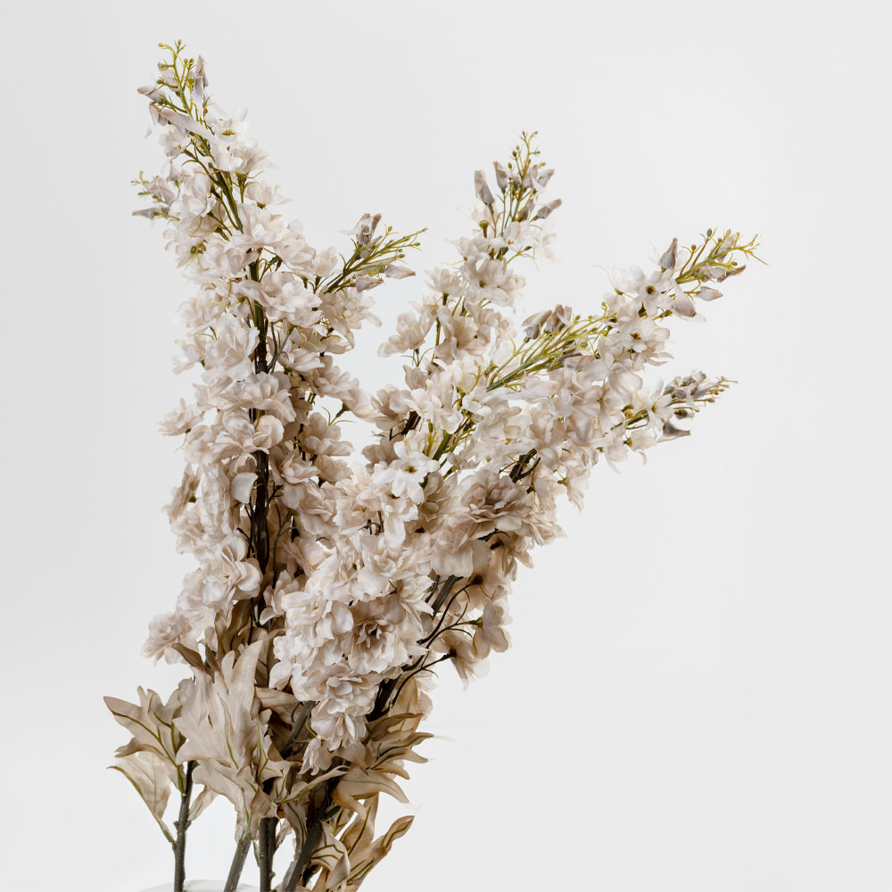 Για την ανάδειξη της αισθητικής κάθε χώρου, το τεχνητό λουλούδι DELPHINIUM 108cm σε μπεζ απόχρωση είναι η ιδανική επιλογή. Τα ιδιαίτερα φύλλα του αποπνέουν μια αίσθηση φυσικής κομψότητας και φρεσκάδας που θα σαγηνεύσει. Με κατασκευή από ανθεκτικό υλικό πολυεστέρα, τα φύλλα του λουλουδιού μοιάζουν με αληθινά και είναι κατάλληλο να διακοσμεί εξαιρετικά το χώρο, τόσο μόνο όσο και σε ανθοσυνθέσεις, ενισχύοντας τη μοντέρνα ή και rustic αισθητική του.