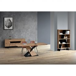 Το τραπέζι DELUX διαθέτει ορθογώνια επιφάνεια σε φυσική απόχρωση με καπλαμά δρυός και μαύρη μεταλλική βάση. Με διαστάσεις 195 x 95 x 76 cm, προσφέρει άνετο χώρο για 6 έως 8 άτομα. Ένα μοντέρνο και πρακτικό τραπέζι, ιδανικό για κάθε μοντέρνα τραπεζαρία.