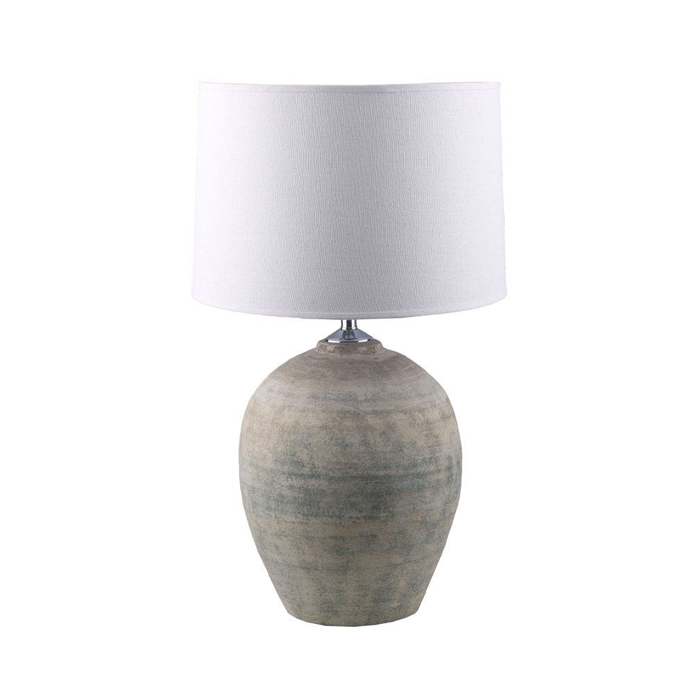 Το επιτραπέζιο φωτιστικό DIONI συνδυάζει ουδέτερους τόνους και φυσικά υλικά, δημιουργώντας ένα ήρεμο και εύκολο να ταιριάξει αποτέλεσμα. Η κεραμική βάση σε γκρι απόχρωση με διακριτική υφή προσθέτει βάθος χωρίς να βαραίνει τον χώρο, ενώ το λευκό λινό καπέλο απαλύνει το φως και κάνει την ατμόσφαιρα πιο φιλόξενη. Με διαστάσεις 28x28x65 cm, ταιριάζει ιδανικά σε κονσόλες, βοηθητικά τραπεζάκια ή κομοδίνα, προσφέροντας φωτισμό για την καθημερινότητα με απλό, οικείο χαρακτήρα.