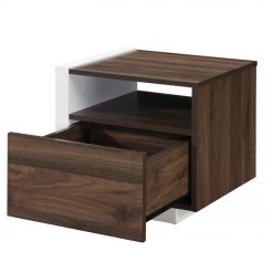 Το κομοδίνο Doble ξεχωρίζει για τη μοντέρνα αισθητική του και τον πρακτικό σχεδιασμό του. Κατασκευασμένο από επένδυση μελαμίνης carta σε κομψή καρυδί απόχρωση, διαθέτει κομψές λευκές λεπτομέρειες που προσδίδουν φινέτσα. Εξοπλισμένο με ένα ευρύχωρο συρτάρι και έναν ανοιχτό αποθηκευτικό χώρο, το Doble είναι ιδανικό για να οργανώσετε τα προσωπικά σας αντικείμενα με στυλ. Ένα έπιπλο που συνδυάζει λειτουργικότητα και αισθητική, κατάλληλο για κάθε σύγχρονο υπνοδωμάτιο.