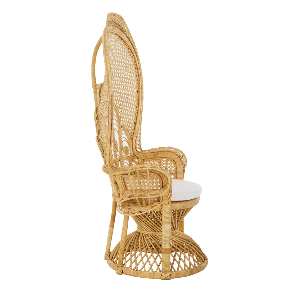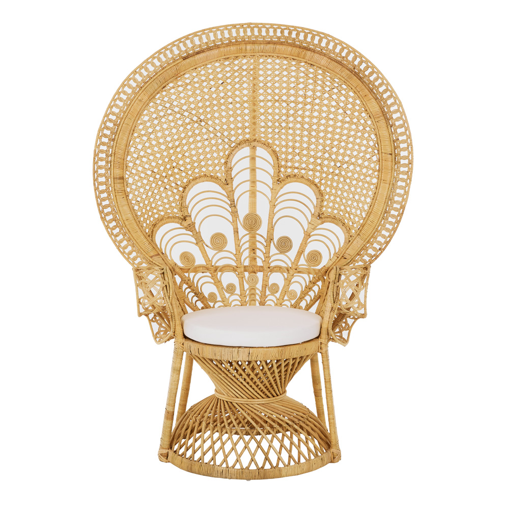 Η πολυθρόνα Elysee είναι ένα αριστούργημα σχεδιασμού που ενσωματώνει την mid-century modern αισθητική και τη φυσική ομορφιά του rattan. Διάσημη για το χαρακτηριστικό και περίτεχνο σχήμα της, που μοιάζει με φτερά παγωνιού, η Elysee θα γίνει όχι μόνο το κεντρικό σημείο κάθε χώρου αλλά και ένας ύμνος στη φυσική κομψότητα και τη διαχρονική τέχνη του rattan. Το φυσικό της χρώμα την καθιστά ευέλικτη για κάθε διακόσμηση, ενώ το αναπαυτικό κάθισμα εξασφαλίζει χαλάρωση και άνεση. Αναβαθμίστε τον χώρο σας με αυτή την εκλεπτυσμένη και μοντέρνα πολυθρόνα, και απολαύστε τη μοναδική της παρουσία.