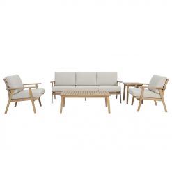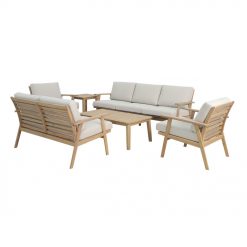 Το σετ σαλονιού Etoile αποτελεί την ιδανική επιλογή για έναν κομψό και φιλόξενο εξωτερικό χώρο. Κατασκευασμένο από ξύλο ακακίας σε φυσική απόχρωση, συνδυάζει στιβαρότητα και εκλεπτυσμένο design, προσφέροντας ένα διαχρονικό στυλ που ταιριάζει σε κάθε διακόσμηση. Το σετ περιλαμβάνει καναπέ, δύο πολυθρόνες και ένα τραπεζάκι σαλονιού, δημιουργώντας έναν άνετο χώρο για χαλάρωση και φιλοξενία. Τα μαξιλάρια από λινό ύφασμα σε ανοιχτό μπεζ χρώμα προσφέρουν εξαιρετική άνεση και αναβαθμίζουν την αισθητική του χώρου σας. Ένα σετ που ενσωματώνει φυσική ομορφιά και λειτουργικότητα, ιδανικό για στιγμές χαλάρωσης στον κήπο ή τη βεράντα.