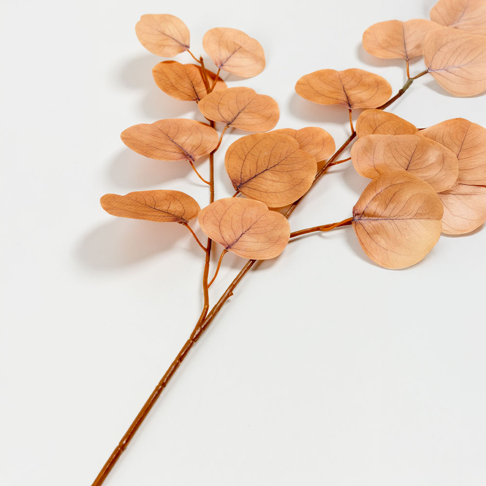 Διακοσμητικό κλαδί EUCALYPTUS 84cm σε πορτοκαλί χρώμα που αποπνέει ζεστασιά και φθινοπωρινή διάθεση. Κατασκευασμένο από ποιοτικό polyester με προσεγμένες λεπτομέρειες που θυμίζουν αληθινό φύλλωμα. Ιδανικό για rustic ή boho διακόσμηση, με μοναδικό χρωματικό χαρακτήρα.