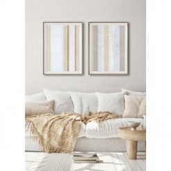 Ο πίνακας EVIK παρουσιάζει κατακόρυφες γραμμές σε λευκό, μπεζ και γκρι, δημιουργώντας ένα minimal και απόλυτα ισορροπημένο αποτέλεσμα. Οι απαλές αποχρώσεις προσδίδουν ηρεμία, ενώ ο φυσικός καμβάς και η ξύλινη κορνίζα εξασφαλίζουν ανθεκτικότητα και σταθερότητα. Είναι ιδανική επιλογή για σύγχρονα σπίτια, επαγγελματικούς χώρους και χώρους υποδοχής. Προσφέρει κομψότητα χωρίς υπερβολές, ενισχύοντας τη φωτεινότητα του περιβάλλοντος.