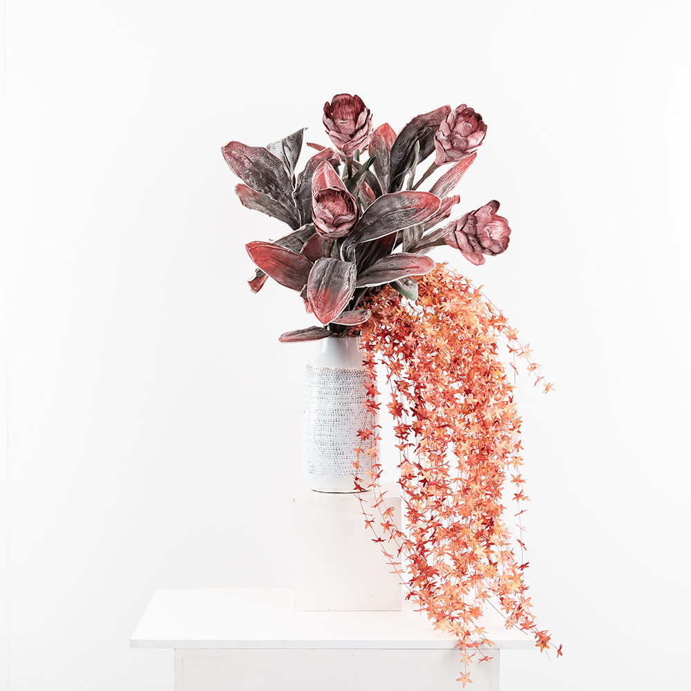 Το FIAMMA είναι ένα τεχνητό κλαδί που συνδυάζει κόκκινες και γκρι αποχρώσεις, δημιουργώντας μια καλλιτεχνική, εκφραστική μορφή. Η ελαφριά κατασκευή EVA Foam επιτρέπει στις “φλόγινες” άκρες του να δείχνουν ζωντανές, κάνοντάς το τέλειο για statement συνθέσεις, μοντέρνες βάζες ή γιορτινά κέντρα τραπεζιού.
