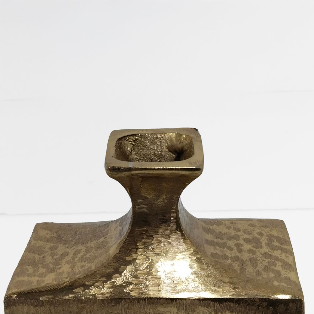 Το FLASCHE είναι ένα ιδιαίτερο μεταλλικό βάζο σε χρυσό φινίρισμα με υφή που θυμίζει χειροποίητη τεχνική. Λειτουργεί ως statement κομμάτι σε μπουφέδες, κονσόλες ή τραπεζάκια και αναδεικνύεται είτε με διακοσμητικά sticks είτε ως αυτόνομο αντικείμενο. Η έντονη γεωμετρική φόρμα του προσθέτει χαρακτήρα σε κάθε χώρο.