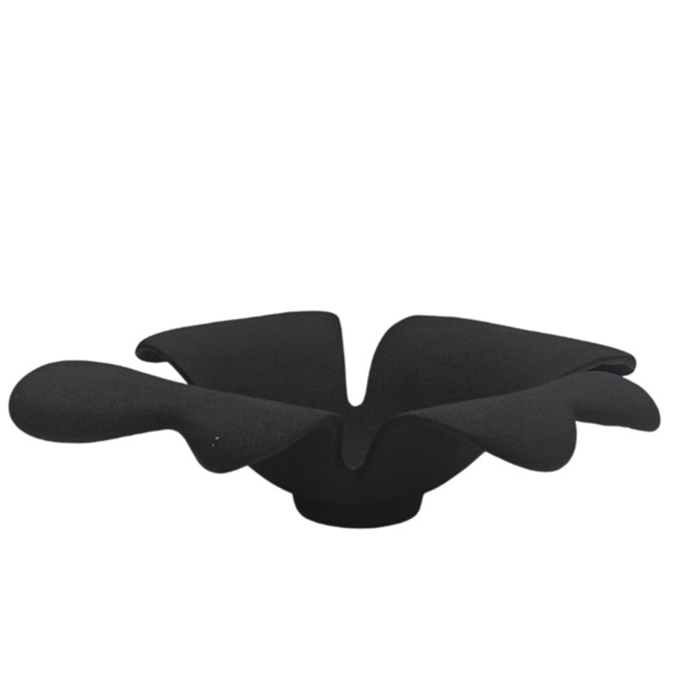 Η διακοσμητική πιατέλα FLORA από αλουμίνιο ξεχωρίζει για την οργανική, ανθο-inspired φόρμα της, που λειτουργεί ως έντονο εικαστικό στοιχείο στον χώρο. Το μαύρο φινίρισμα προσδίδει βάθος και σύγχρονη κομψότητα, αναδεικνύοντας τις καμπύλες και τη γλυπτική της σχεδίαση. Οι γενναιόδωρες διαστάσεις της επιτρέπουν χρήση τόσο ως αυτόνομο διακοσμητικό όσο και ως βάση για επιμελημένες συνθέσεις. Ταιριάζει ιδανικά σε modern, minimal και art-driven interiors, σε οικιακά αλλά και επαγγελματικά περιβάλλοντα.