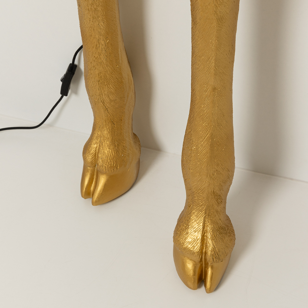 Το επιδαπέδιο φωτιστικό GIRAFE είναι ένα εντυπωσιακό φωτιστικό-γλυπτό ύψους 196 cm σε χρυσό φινίρισμα, κατασκευασμένο από fiberglass για αντοχή και ελαφριά δομή. Είναι ιδανικό για premium χώρους, hotel lobbies, boutique stores και statement corners που ζητούν εντυπωσιασμό και instagrammable στιγμές. Ο φωτισμός γίνεται από το στόμα της καμηλοπάρδαλης, δημιουργώντας άμεσα focal point.