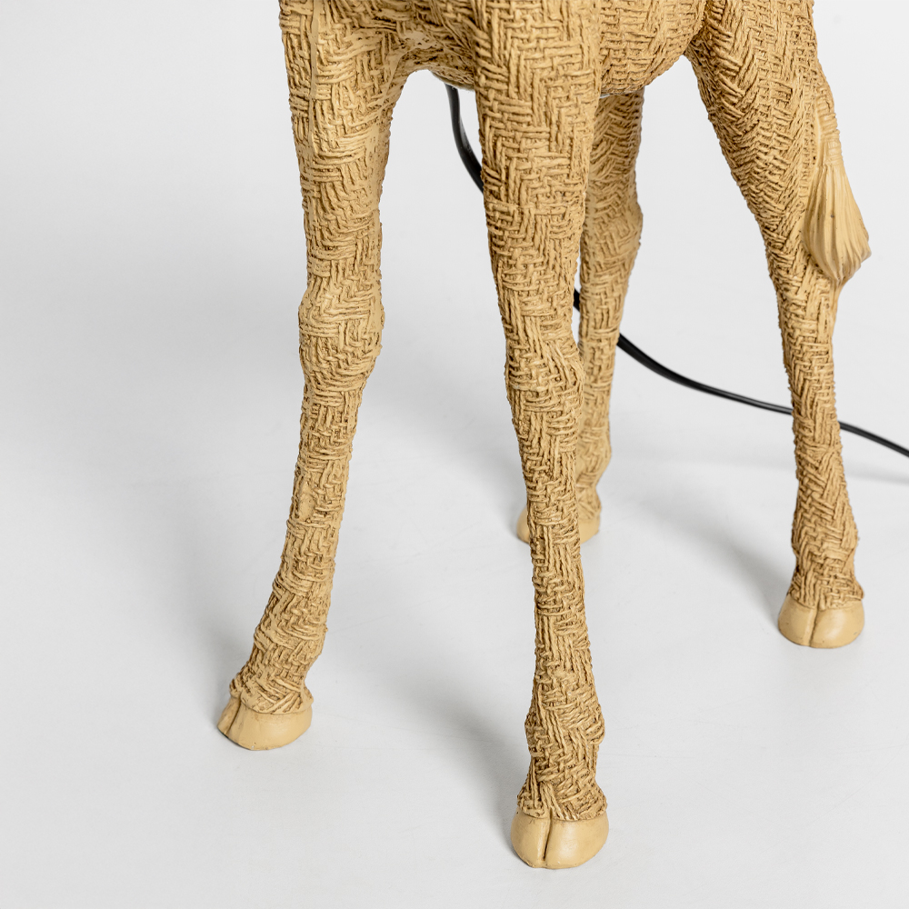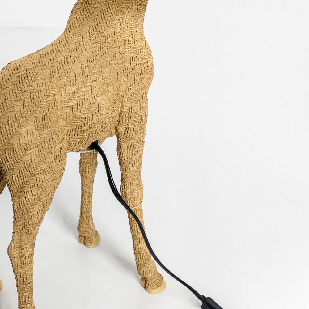 Το GIRAFFA είναι ένα εντυπωσιακό επιτραπέζιο φωτιστικό σε μορφή καμηλοπάρδαλης, με φυσική polyresin βάση και λευκό υφασμάτινο καπέλο που δημιουργεί διάχυτο, ζεστό φωτισμό. Ο γλυπτικός σχεδιασμός του το μετατρέπει σε statement αντικείμενο, ιδανικό για σαλόνια, concept καταστήματα ή ξενοδοχειακά lobby με playful και artistic διάθεση. Συνδυάζει λειτουργικότητα με διακοσμητική αξία, προσθέτοντας χαρακτήρα και μοναδικότητα στον χώρο.