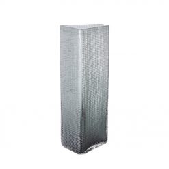 Το GRAVIR GREY είναι ένα ψηλό γυάλινο βάζο με αυστηρή, γεωμετρική φόρμα και καθαρή κατακόρυφη γραμμή. Ο σχεδιασμός του βασίζεται στην απλότητα και στις σωστές αναλογίες, δημιουργώντας ένα διακοσμητικό αντικείμενο με διακριτική αλλά ξεκάθαρη παρουσία. Το γκρι γυαλί προσδίδει βάθος και ουδέτερο χαρακτήρα, επιτρέποντας εύκολους συνδυασμούς με διαφορετικά υλικά και χρωματικές παλέτες. Με ύψος 44cm, προορίζεται για δάπεδο ή για τοποθέτηση δίπλα σε έπιπλα, είτε ως αυτόνομο στοιχείο είτε με επιλεγμένα ψηλά κλαδιά.