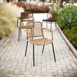 Η καρέκλα Hang ενσωματώνει φυσική αισθητική και σύγχρονο design, δημιουργώντας μια κομψή και άνετη επιλογή για κάθε χώρο. Είναι κατασκευασμένη από πλεκτό συνθετικό rattan σε σκούρα φυσική απόχρωση, αποπνέοντας ζεστασιά και διαχρονική κομψότητα. Ο ανθεκτικός μεταλλικός σκελετός εξασφαλίζει σταθερότητα και μακροχρόνια αντοχή, ενώ το μαύρο μαξιλάρι στο κάθισμα προσφέρει επιπλέον άνεση και στήριξη. Ιδανική για τραπεζαρίες, καθιστικά ή βεράντες, η Hang συνδυάζει λειτουργικότητα και στυλ, αποτελώντας την τέλεια επιλογή για όσους αναζητούν ένα κομψό και εκλεπτυσμένο έπιπλο στον χώρο τους.