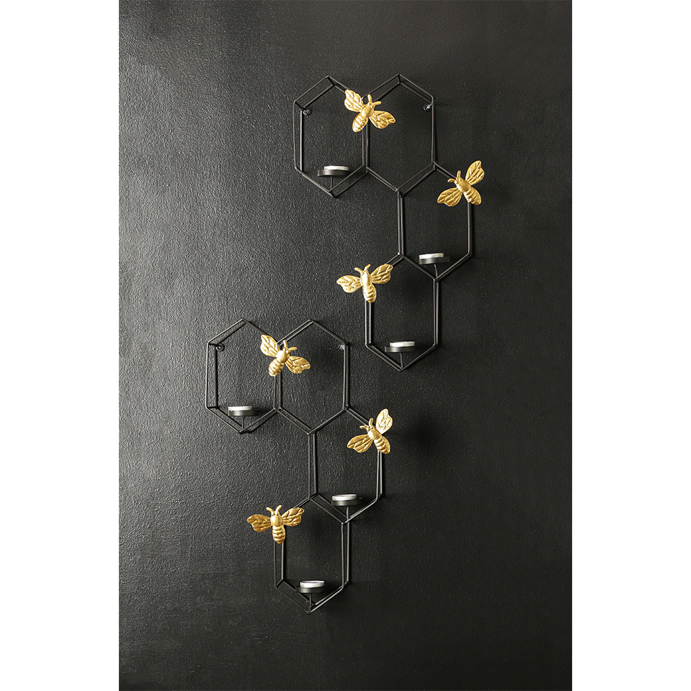 Το επιτοίχιο κηροπήγιο HIVE ξεχωρίζει για τον γεωμετρικό του σχεδιασμό και τις διακοσμητικές χρυσές μέλισσες, προσφέροντας έναν κομψό και παιχνιδιάρικο χαρακτήρα στη διακόσμησή σας. Διαθέτει υποδοχές για 6 ρεσώ, δημιουργώντας μια ζεστή και φιλόξενη ατμόσφαιρα.