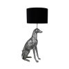 Το επιτραπέζιο φωτιστικό Hundur ξεχωρίζει χάρη στη μεταλλική, ασημί polyresin βάση σε μορφή σκύλου, προσφέροντας playful αλλά ταυτόχρονα κομψή διάθεση. Το μαύρο καπέλο ολοκληρώνει ένα μοντέρνο, dramatic look, ιδανικό για living rooms ή design-oriented χώρους.