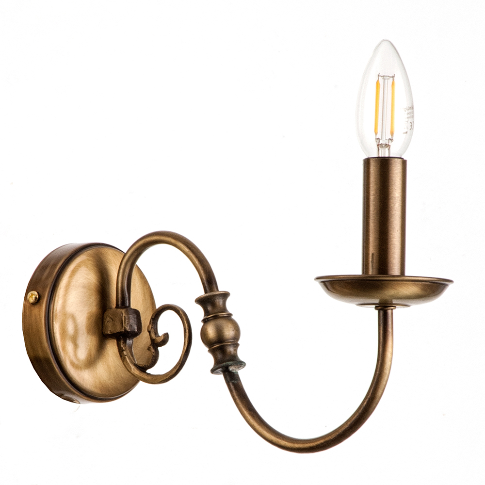 Πρόκειται για ένα επιτοίχιο φωτιστικό από οξυντέ μέταλλο με έναν λαμπτήρα. Κατάλληλο για διακόσμηση κλασσικών εσωτερικών χώρων. Διατίθεται και λευκό υφασμάτινο καπέλο για πιο απαλό φωτισμό το οποίο θα πρέπει να ζητηθεί επιπλέον.