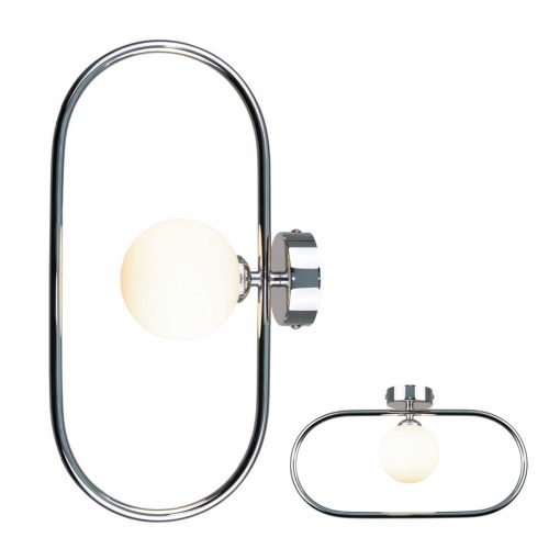 Πρόκειται για ένα φωτιστικό κατασκευασμένο από χρώμιο μέταλλο και λευκή οπαλίνα. Το φως διαχέεται ομοιόμορφα και μπορεί να τοποθετηθεί και ως φωτιστικό οροφής.
