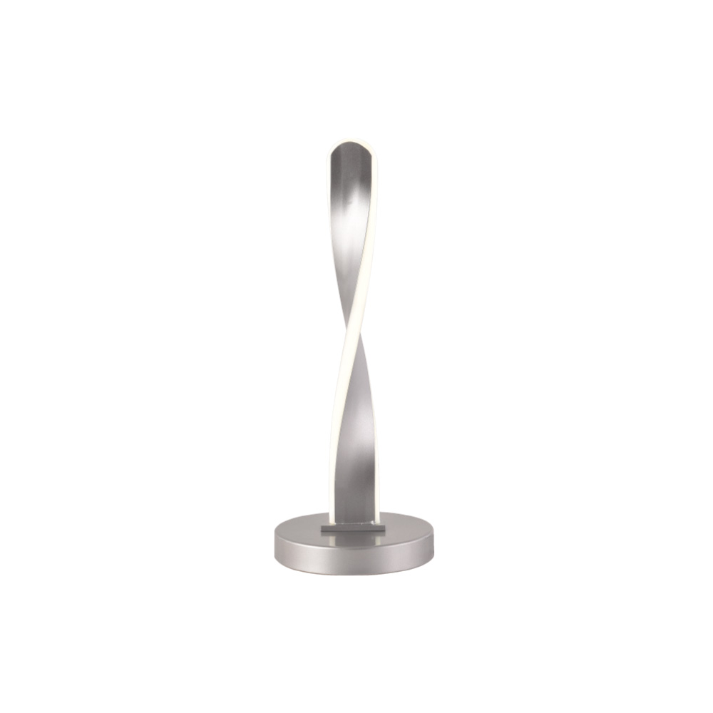 Πρόκειται για ένα επιτραπέζιο φωτιστικό κατασκευασμένο από αλουμίνιο σε ασημί ματ απόχρωση. Η λευκή ακρυλική επιφάνεια σε όλο το σώμα του καλύπτει τον led φωτισμό. Το ιδιαίτερο και αφαιρετικό σχήμα του το τοποθετεί σε μοντέρνους χώρους.