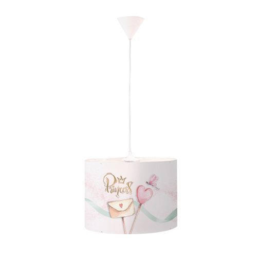 Πρόκειται για ένα κρεμαστό παιδικό φωτιστικό με λευκή ρυθμιζόμενη ανάρτηση και πολύχρωμο καπέλο.