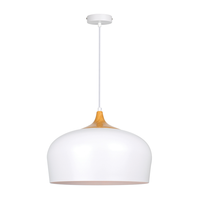 Πρόκειται για ένα κρεμαστό φωτιστικό από λευκό μέταλλο και διακριτική ξύλινη λεπτομέρεια. Η μίνιμαλ σχεδίασή του το καθιστά ιδανική επιλογή για οποιονδήποτε μοντέρνο χώρο. Μπορεί να τοποθετηθεί σε οποιονδήποτε εσωτερικό χώρο μιας και υπάρχει η δυνατότητα προσαρμογής του ύψους του σε αυτόν.