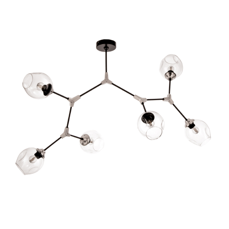 Πρόκειται για ένα μεταλλικό κρεμαστό φωτιστικό μαύρου χρώματος με νίκελ διακριτικά στοιχεία και έξι λαμπτήρες. Το γυαλί είναι διάφανο, αλλά υπάρχει και η επιλογή του φιμέ χρώματος. Οι βραχίονες κινούνται για να λάβουν το επιθυμητό σχήμα. Η μίνιμαλ σχεδίασή του το τοποθετεί σε οποιονδήποτε μοντέρνο εσωτερικό χώρο.