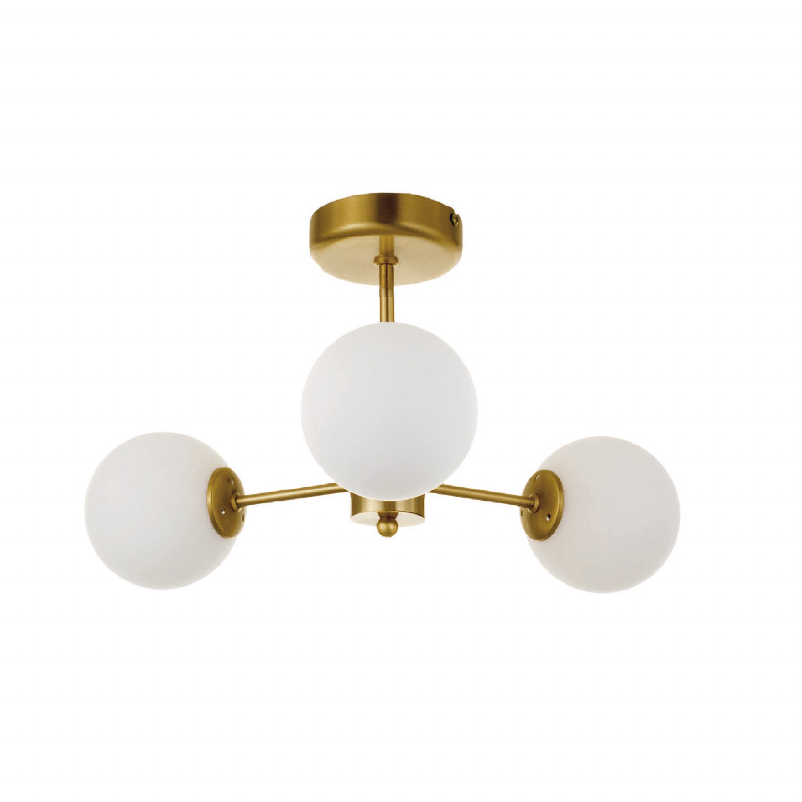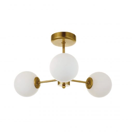 Πρόκειται για ένα χρυσό ματ μεταλλικό φωτιστικό με λευκή οπαλίνα στο τελείωμα και τρεις λαμπτήρες. Η μίνιμαλ σχεδίασή του το τοποθετεί ιδανικά σε οποιονδήποτε μοντέρνο αλλά και πιο κλασσικό εσωτερικό χώρο.