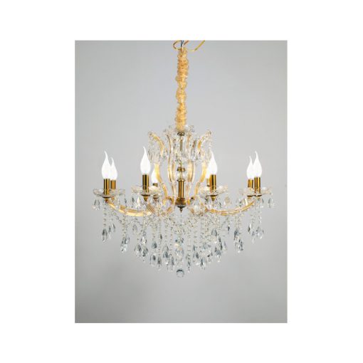 Πρόκειται για ένα κρεμαστό φωτιστικό με έξι λαμπτήρες. Το σώμα του αποτελείται από χρυσό μέταλλο που καλύπτεται από διάφανο γυαλί. Τα κρύσταλλα που το διακοσμούν είναι διάφανα. Η μεταλλική ανάρτηση είναι ρυθμιζόμενη ώστε να προσαρμόζεται στον κάθε χώρο. Διατίθεται και η επιλογή του υφασμάτινου καπέλου το οποίο πρέπει να ζητηθεί επιπλέον.