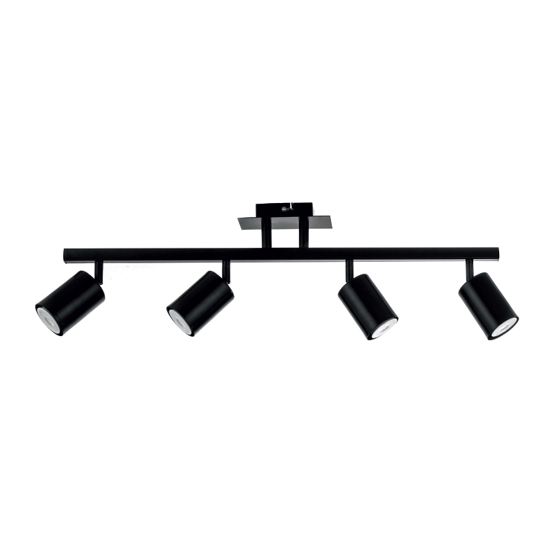 Πρόκειται για ένα μεταλλικό σποτ σε μαύρη απόχρωση με τέσσερις λαμπτήρες. Το μεταλλικό καπάκι μπροστινό του μέρος κινείται προς οποιαδήποτε κατεύθυνση. Τοποθετείται και στην οροφή και στον τοίχο!