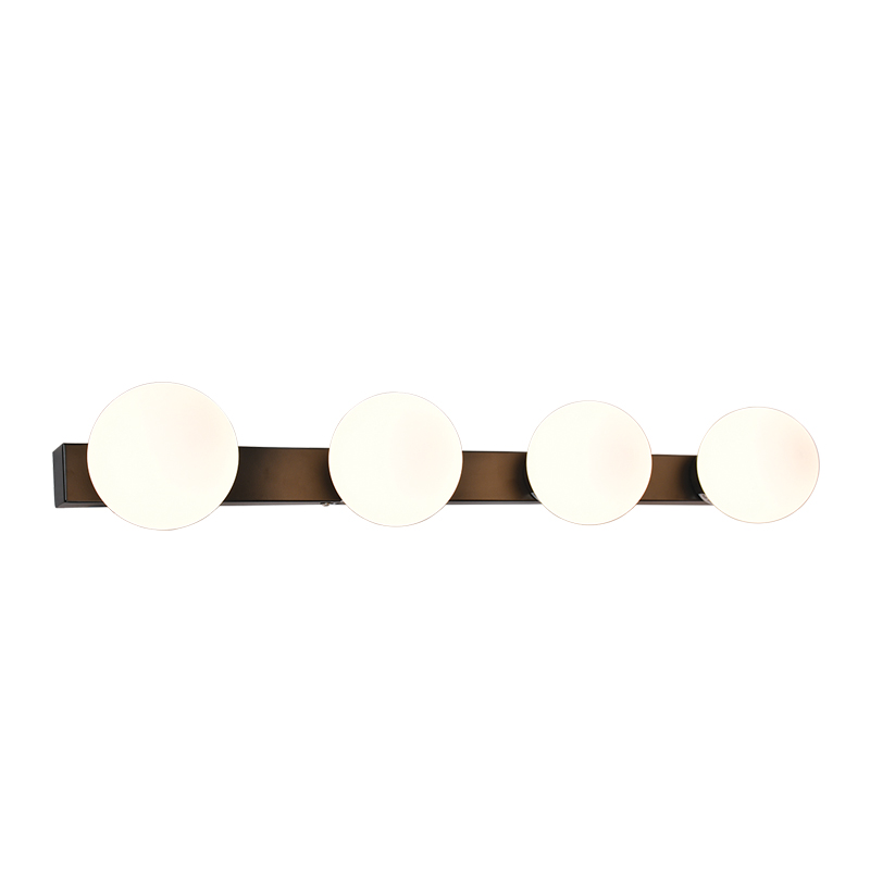 Πρόκειται για ένα επιτοίχιο φωτιστικό από μαύρο μέταλλο λευκή οπαλίνα και τέσσερις λαμπτήρες. Η μίνιμαλ σχεδίαση και το σχήμα του το τοποθετεί σε μοντέρνους χώρους εσωτερικής διακόσμησης. Τοποθετείται και ως φωτιστικό οροφής!