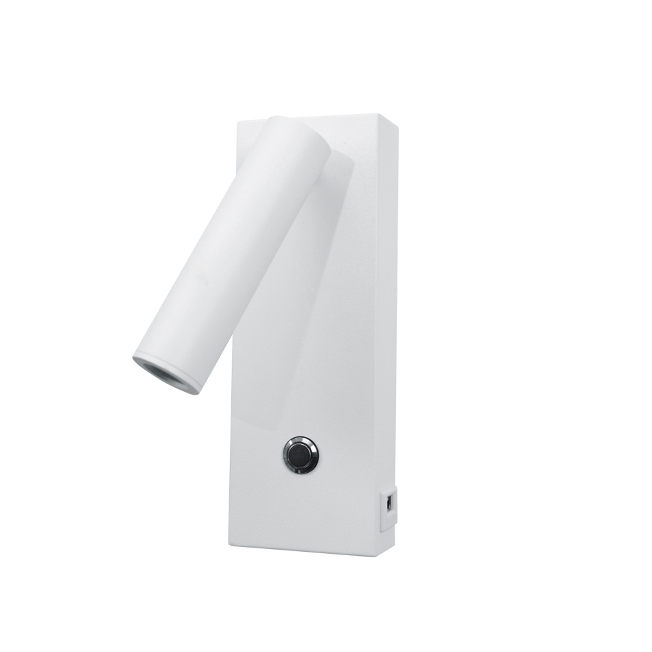 Επιτοίχιο φωτιστικό ανάγνωσης (spot) σε λευκό ματ φινίρισμα, με διαστάσεις βάσης 6 × 17 cm. Είναι κατασκευασμένο από μέταλλο υψηλής αντοχής και διαθέτει ενσωματωμένο σποτ κυλινδρικού σχεδιασμού με δυνατότητα ρύθμισης της κλίσης για την ακριβή κατεύθυνση της φωτεινής δέσμης.Το φωτιστικό ενσωματώνει τεχνολογία LED ισχύος 3W, αποδίδοντας θερμό λευκό φως (3000K). Αυτό που ενισχύει την ιδιαιτερότητά του είναι οι ενσωματωμένες θύρες USB και Type-C στη βάση, οι οποίες δίνουν τη δυνατότητα ταυτόχρονης φόρτισης κινητών τηλεφώνων και άλλων συσκευών, καθιστώντας το μια ολοκληρωμένη τεχνική λύση για σύγχρονα ξενοδοχειακά καταλύματα και κεφαλάρια κρεβατιών.Ο εργονομικός σχεδιασμός του συμπληρώνεται από κεντρικό διακόπτη αφής (touch) για άμεσο έλεγχο, ενώ η μεταλλική του δομή εξασφαλίζει τη βέλτιστη απαγωγή θερμότητας και μακροχρόνια αξιοπιστία σε απαιτητικά επαγγελματικά περιβάλλοντα.ΧαρακτηριστικόΠεριγραφήΙσχύς ΦωτισμούLED 3WΘερμοκρασία Φωτός3000ΚΥλικό ΚατασκευήςΜέταλλοΧρώμαΛευκό ΜατΔιαστάσεις6 × 17 cmΤοποθέτησηΕπιτοίχιαΣυνδεσιμότηταΘύρα USB & Θύρα Type-CΈλεγχοςΕνσωματωμένος Διακόπτης Αφής (Touch)Βαθμός ΠροστασίαςIP20