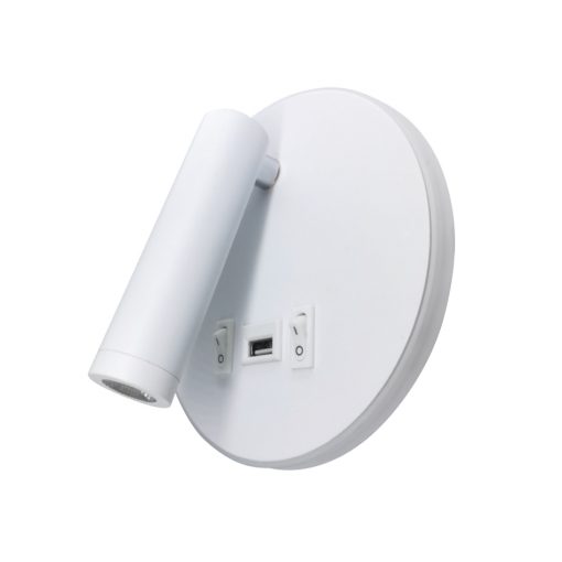 Πρόκειται για ένα μεταλλικό μαύρο επιτοίχιο φωτιστικό. Στο μπροστινό του μέρος υπάρχουν δύο διακριτικά διακόπτει ώστε οι δύο πηγές φωτισμού να μπορούν να ανάβουν ανεξάρτητα. Και οι δύο φωτισμοί είναι led θερμής απόχρωσης. Αυτό που ενισχύει την ιδιαιτερότητά του είναι η θύρα usb που είναι ενσωματωμένη και δίνει τη δυνατότητα φόρτισης του κινητού τηλεφώνου!