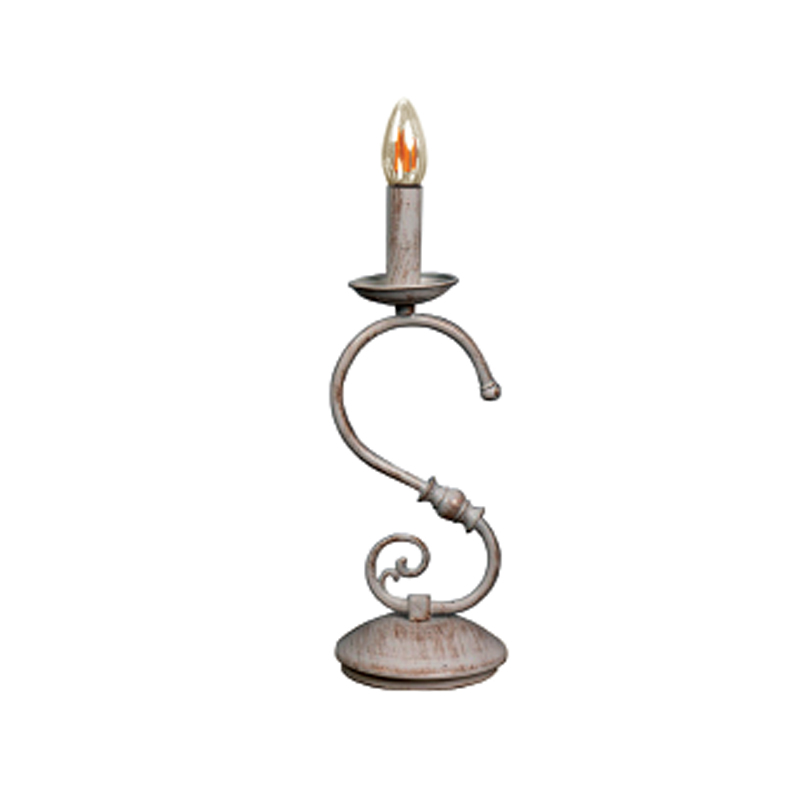 Πρόκειται για ένα επιτραπέζιο φωτιστικό από μέταλλο σε λευκή πατίνα. Κατάλληλο για διακόσμηση κλασσικών εσωτερικών χώρων. Διατίθεται και λευκό υφασμάτινο καπέλο για πιο απαλό φωτισμό το οποίο θα πρέπει να ζητηθεί επιπλέον.