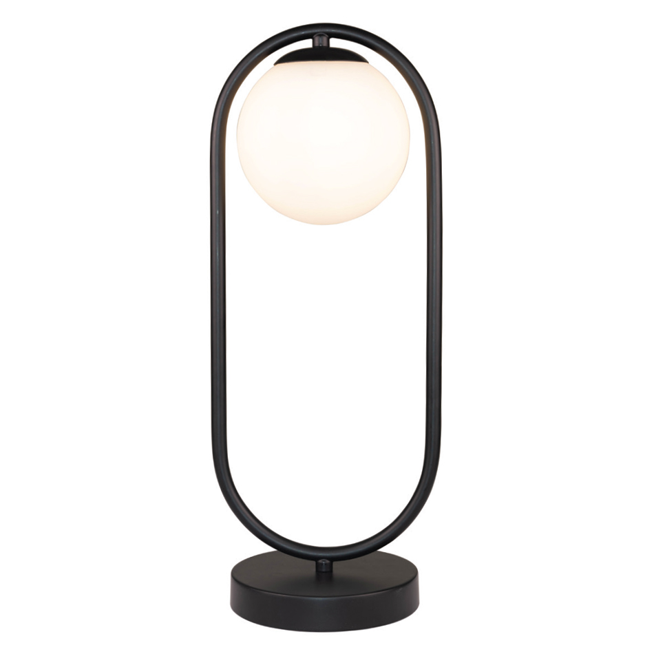 Πρόκειται για ένα φωτιστικό κατασκευασμένο από μαύρο μέταλλο και λευκή οπαλίνα. Το φως διαχέεται ομοιόμορφα.