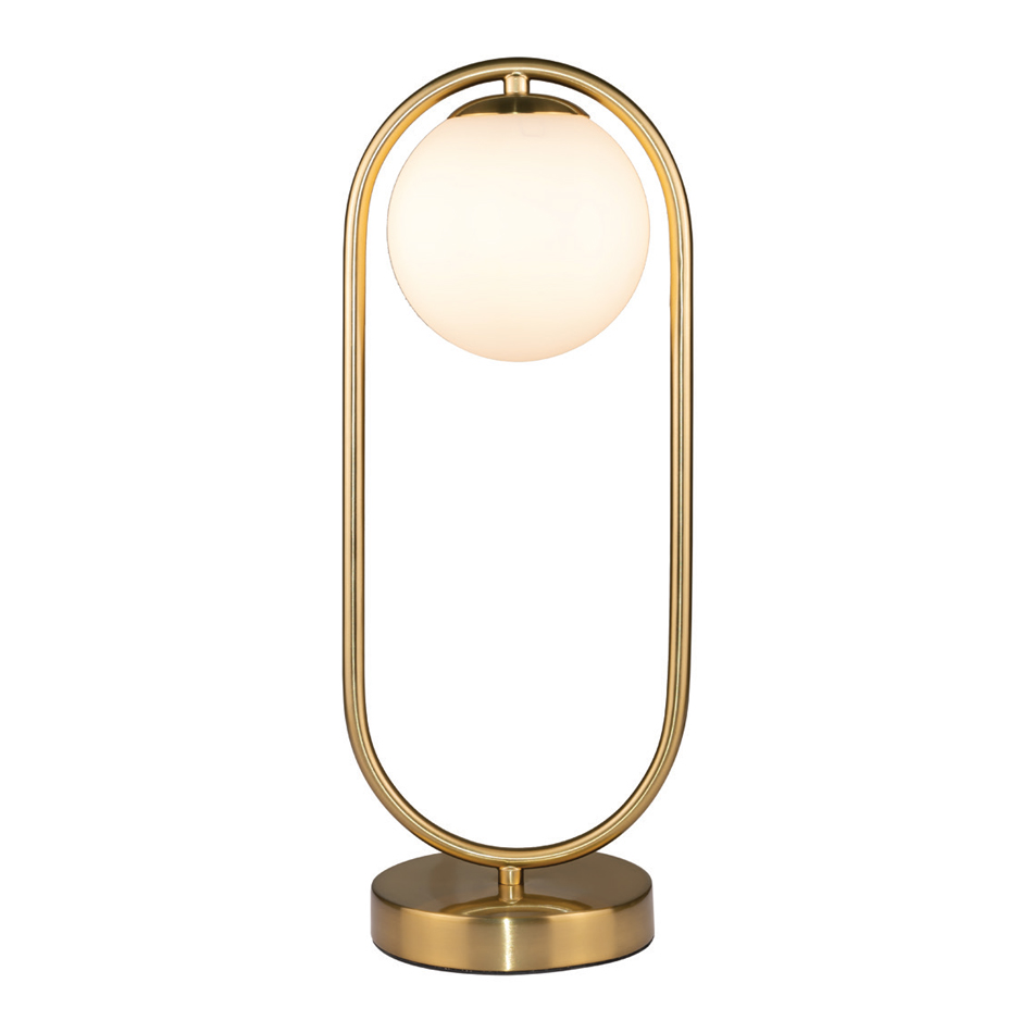 Πρόκειται για ένα φωτιστικό κατασκευασμένο από χρυσαφί μέταλλο και λευκή οπαλίνα. Το φως διαχέεται ομοιόμορφα.