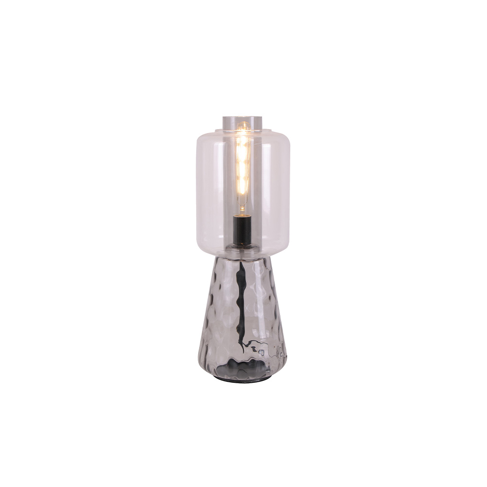 Πρόκειται για γυάλινο επιτραπέζιο φωτιστικό που επιδέχεται μία λάμπα Ε27.