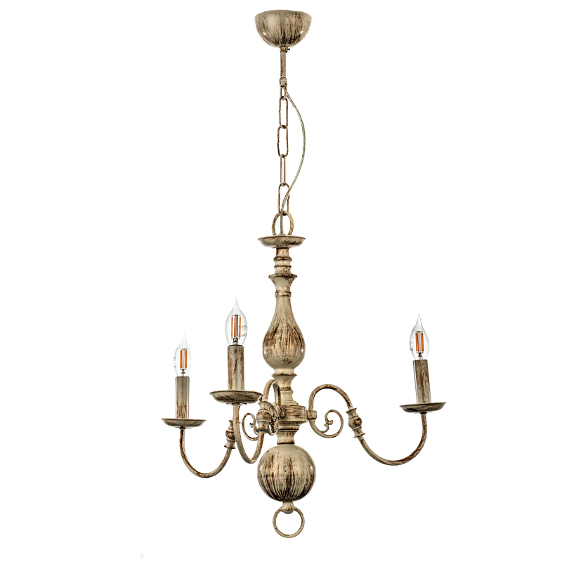 Πρόκειται για ένα κρεμαστό φωτιστικό από μέταλλο σε λευκή πατίνα με τρεις λαμπτήρες. Κατάλληλο για διακόσμηση κλασσικών εσωτερικών χώρων. Η μεταλλική ανάρτηση είναι ρυθμιζόμενη για να προσαρμοστεί στον κάθε χώρο. Διατίθεται και λευκό υφασμάτινο καπέλο για πιο απαλό φωτισμό το οποίο θα πρέπει να ζητηθεί επιπλέον.