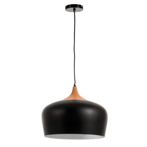 Πρόκειται για ένα κρεμαστό φωτιστικό από μαύρο μέταλλο και διακριτική ξύλινη λεπτομέρεια. Η μίνιμαλ σχεδίασή του το καθιστά ιδανική επιλογή για οποιονδήποτε μοντέρνο χώρο. Μπορεί να τοποθετηθεί σε οποιονδήποτε εσωτερικό χώρο μιας και υπάρχει η δυνατότητα προσαρμογής του ύψους του σε αυτόν.