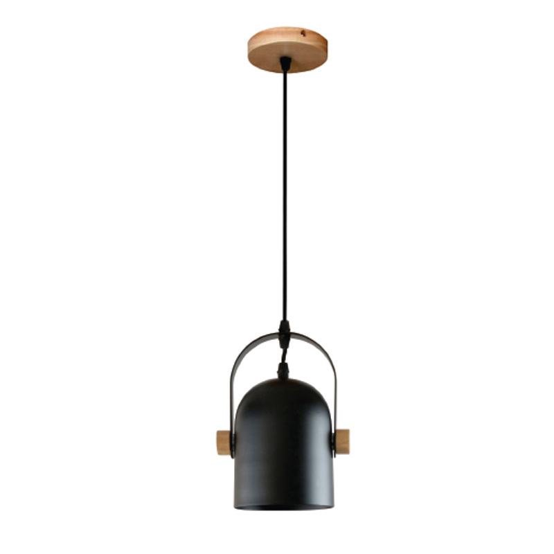 Πρόκειται για ένα κρεμαστό φωτιστικό κατασκευασμένο από μαύρο μέταλλο και ξύλινη βάση. Η ανάρτησή του είναι από μαύρο καλώδιο ώστε να μπορεί να ρυθμιστεί ιδανικά στον κάθε χώρο. Το μπροστινό μέρος κινείται για να προσαρμοστεί στις ανάγκες του χώρου τοποθέτησής του.