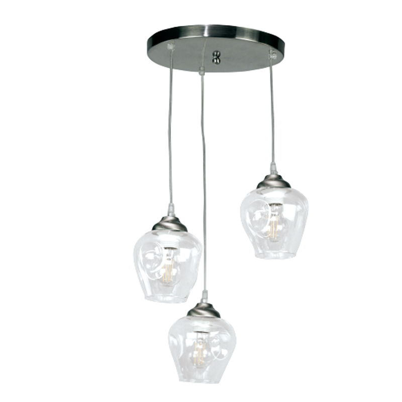 Πρόκειται για ένα κρεμαστό φωτιστικό από νίκελ ματ μέταλλο και διάφανο γυαλί με τρεις λαμπτήρες. Διατίθεται και η επιλογή του φιμέ γυαλιού. Το ύψος της ανάρτησης ρυθμίζεται στον κάθε μοντέρνο εσωτερικό χώρο τοποθέτησης του.