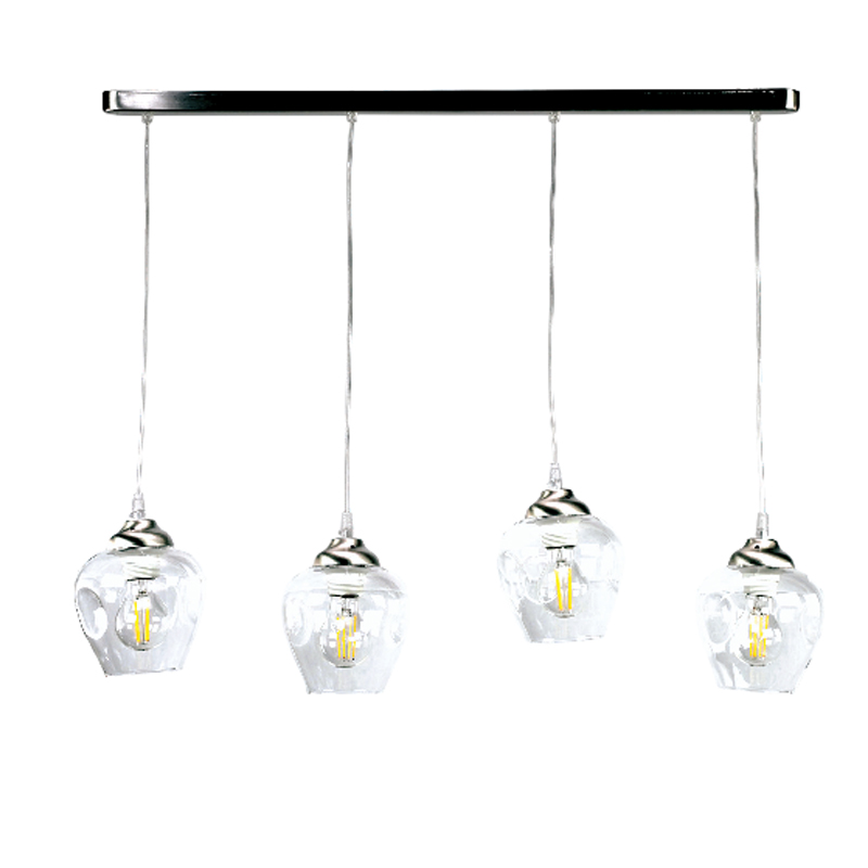 Πρόκειται για ένα κρεμαστό φωτιστικό από νίκελ ματ μέταλλο και διάφανο γυαλί με τέσσερις λαμπτήρες. Διατίθεται και η επιλογή του φιμέ γυαλιού. Το ύψος της ανάρτησης ρυθμίζεται στον κάθε μοντέρνο εσωτερικό χώρο τοποθέτησης του.