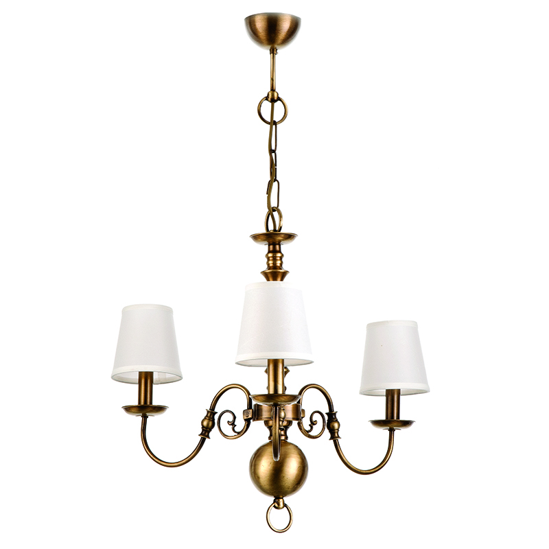 Πρόκειται για ένα κρεμαστό φωτιστικό από οξυντέ μέταλλο με τρεις λαμπτήρες. Κατάλληλο για διακόσμηση κλασσικών εσωτερικών χώρων. Η μεταλλική ανάρτηση είναι ρυθμιζόμενη για να προσαρμοστεί στον κάθε χώρο. Διατίθεται και λευκό υφασμάτινο καπέλο για πιο απαλό φωτισμό το οποίο θα πρέπει να ζητηθεί επιπλέον.