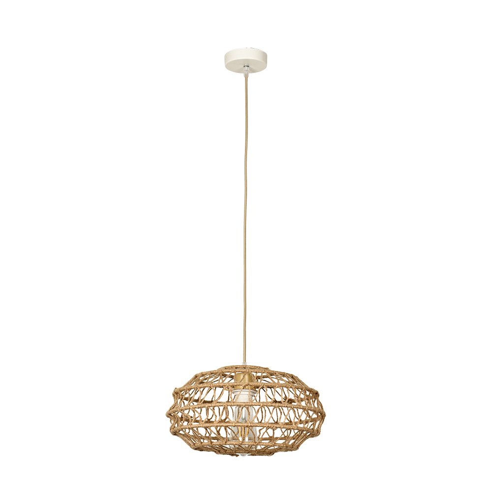 Ένα κρεμαστό φωτιστικό κατασκευασμένο από καφέ σχοινί κατάλληλο για ποικίλους εσωτερικούς χώρους. Αποτελεί την ιδανική επιλογή για όποιον επιθυμεί μια πιο χαλαρή διάθεση στον χώρο του.