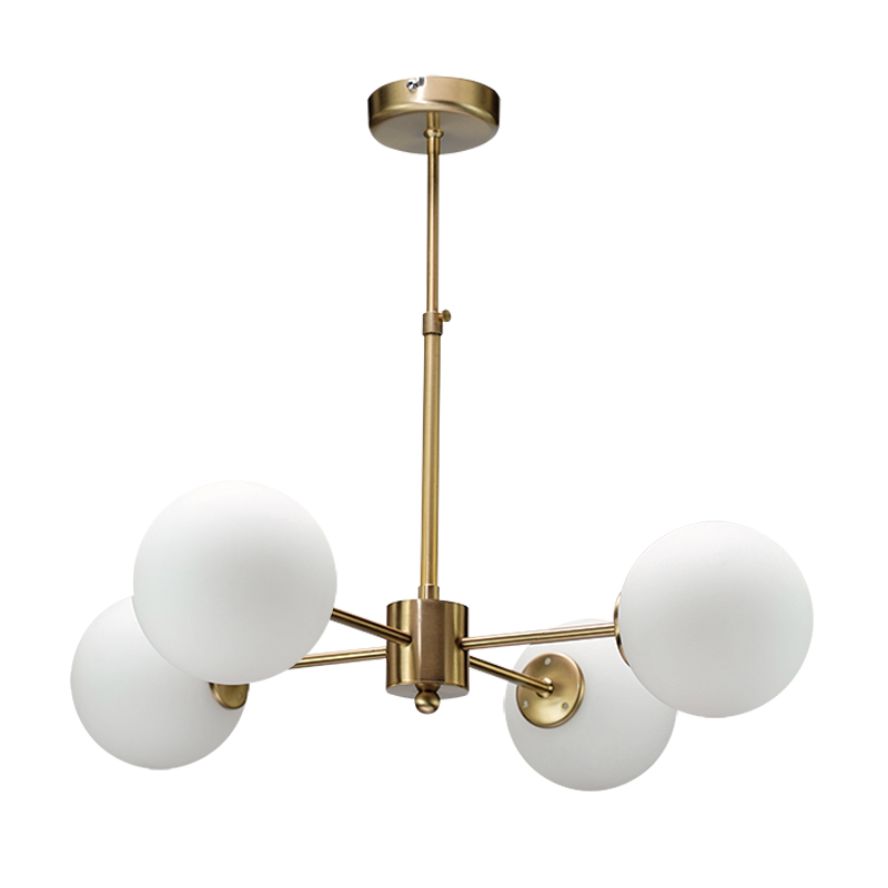 Πρόκειται για ένα χρυσό ματ μεταλλικό φωτιστικό με λευκή οπαλίνα στο τελείωμα και τέσσερις λαμπτήρες. Η μίνιμαλ σχεδίασή του το τοποθετεί ιδανικά σε οποιονδήποτε μοντέρνο αλλά και πιο κλασσικό εσωτερικό χώρο. Η ανάρτησή του είναι μεταλλική και ρυθμιζόμενη ώστε να προσαρμοστεί ιδανικά στον χώρο τοποθέτησής του.
