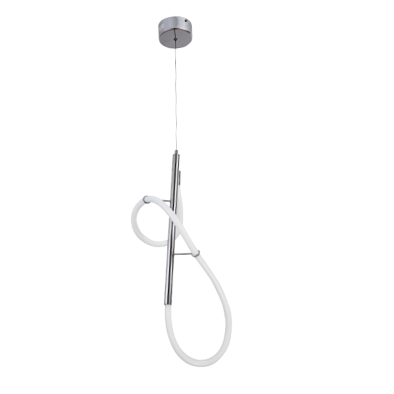 Πρόκειται για ένα κρεμαστό φωτιστικό με αφαιρετική σχεδίαση. Το χρώμιο μέταλλο συμπληρώνει τον led φωτιζόμενο και εύκαμπτο σωλήνα θερμής απόχρωσης. Το φως διαχέεται σε όλον τον χώρο και η ανάρτησή του είναι ρυθμιζόμενη. Διακοσμεί ιδανικά οποιονδήποτε μοντέρνο εσωτερικό χώρο.
