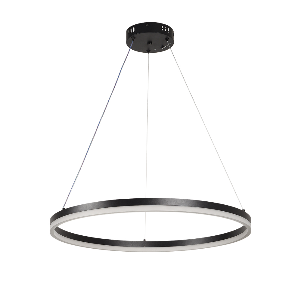 Κρεμαστό φωτιστικό LED 45W σε μαύρη απόχρωση με επιλογή απόχρωσης φωτισμού απο διακόπτη που βρίσκεται στην β΄άση του φωτιστικού (3CCT by switch on base) .Το προϊόν παρέχεται με 2 επιλογές τοποθέτησης .Το προϊόν ντιμάρεται απο απλό διακόπτη τοίχου με εναλλαγή στο πάτημα (3 step dimmable)