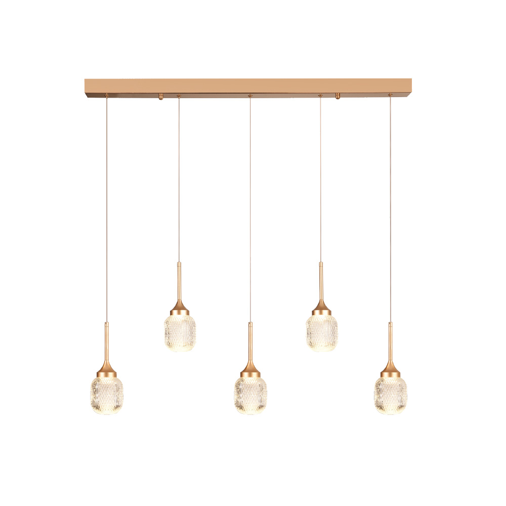 Πρόκειται για ένα κρεμαστό φωτιστικό από χρυσαφί μέταλλο και ακρυλικό. Το ύψος της ανάρτησης ρυθμίζεται στον κάθε μοντέρνο εσωτερικό χώρο τοποθέτησης του.