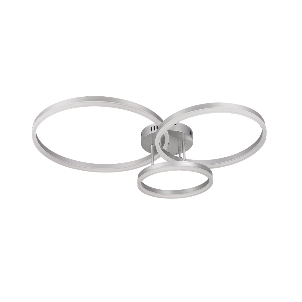 Φωτιστικό οροφής LED 75W σε ασημί απόχρωση με επιλογή απόχρωσης φωτισμού απο διακόπτη που βρίσκεται στην β΄άση του φωτιστικού (3CCT by switch on base) .Το προϊόν ντιμάρεται απο απλό διακόπτη τοίχου με εναλλαγή στο πάτημα (3 step dimmable)